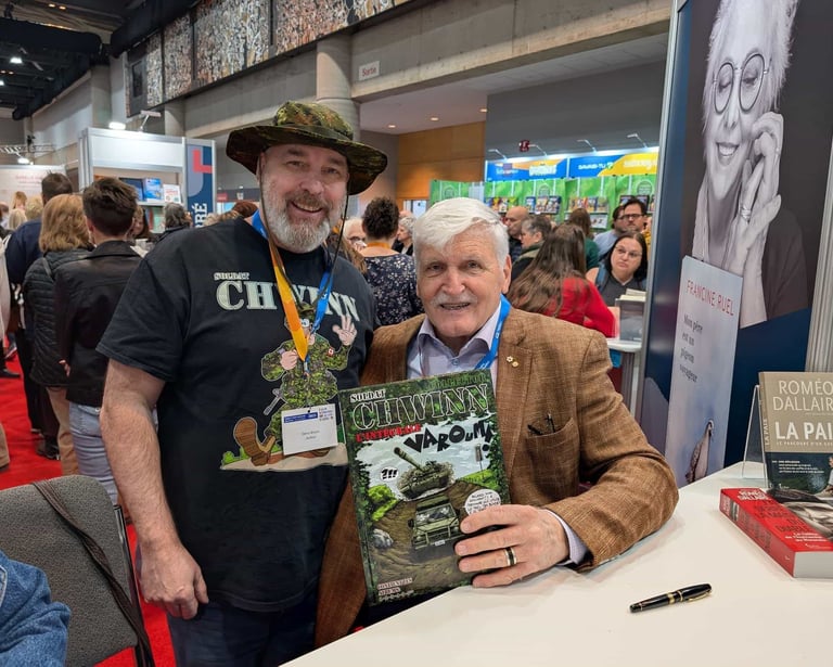 Denis Bisson à la rencontre du Général dallaire au salon du livre de 2025. ''Le Général Dallaire à tout de suite reconnu chwinn''.