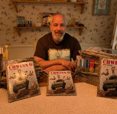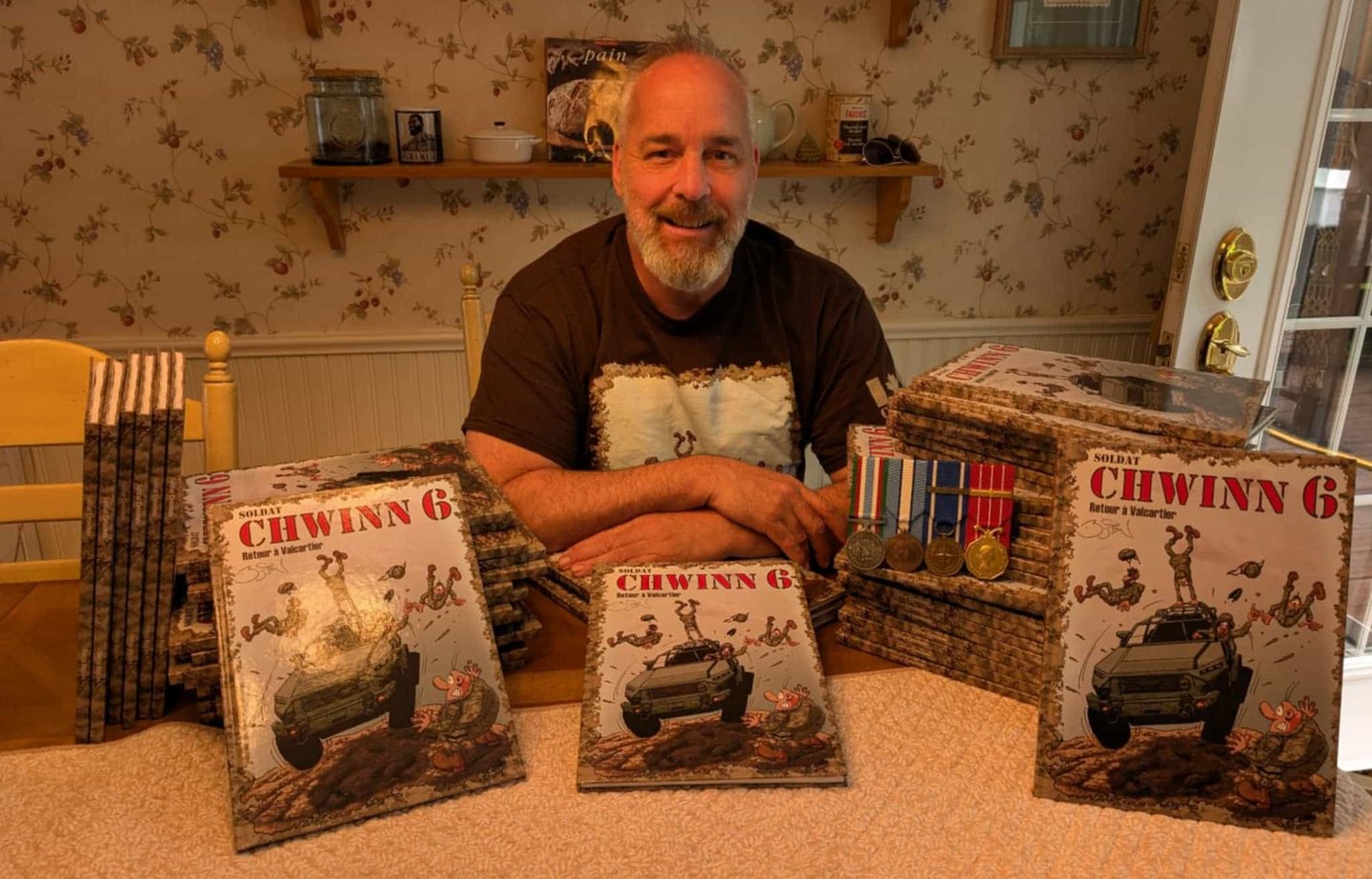 C’est au cœur de la vie militaire que Denis Bisson a donné naissance au SOLDAT CHWINN, un personnage haut en couleur à la fois attachant, maladroit et profondément humain. À travers ses aventures humoristiques, il met en lumière les réalités du quotidien militaire avec une touche d’autodérision, offrant ainsi un regard à la fois lucide et bienveillant sur la vie en uniforme.