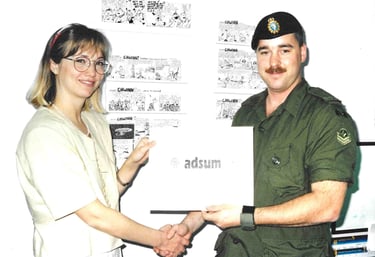 « Lors de mon arrivée 1998 à Valcartier, j'ai commencé à lire les aventures du Sdt Chwinn dans l'ADSUM. Et maintenant après presque 35ans de carrière militaire, je vois apparaître une page Facebook du Sdt Chwinn.... ooooohhhhh que des souvenirs.